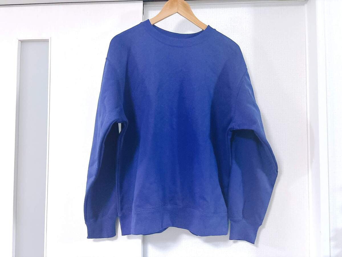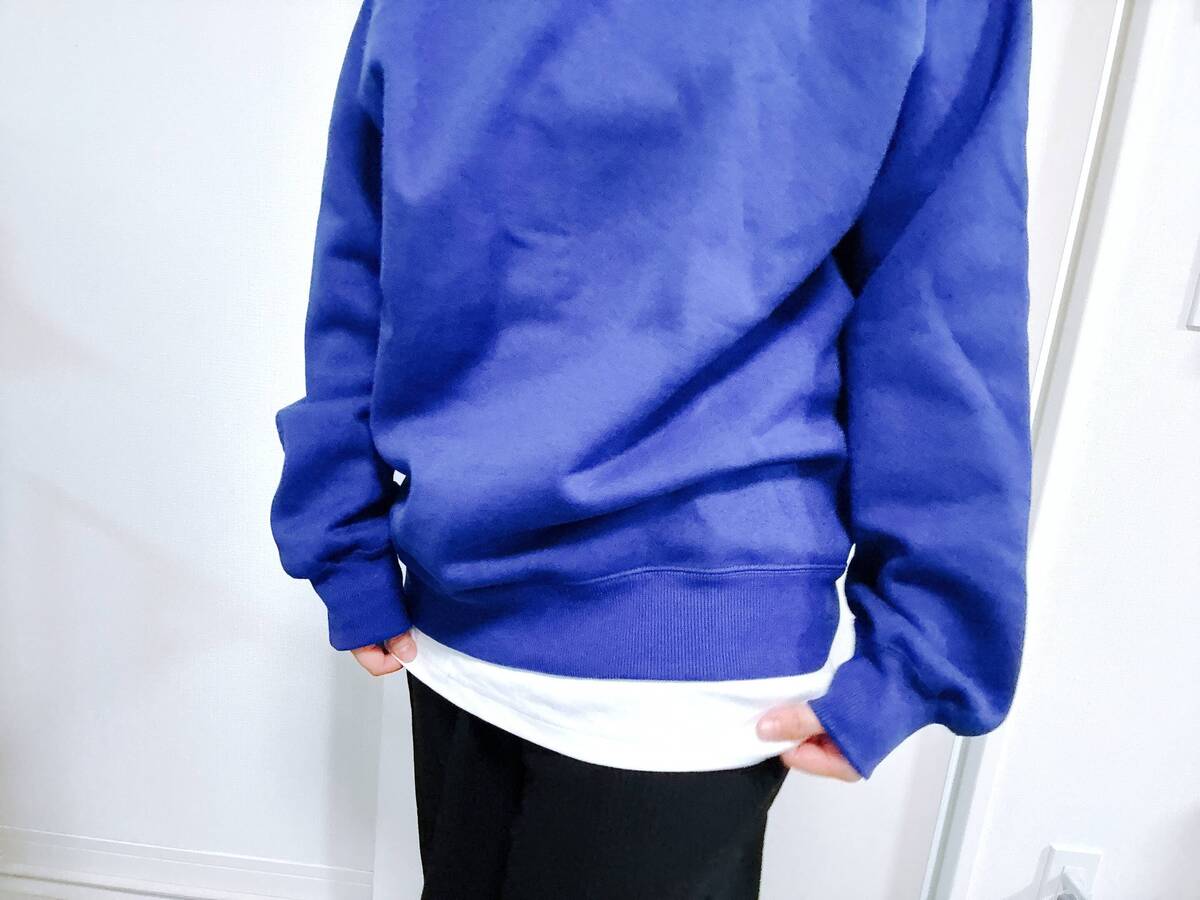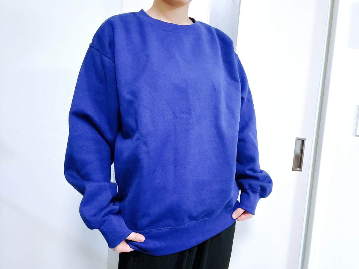 たまたまなのか、その日のGUはヘビーウェイトスウェットプルオーバーのブルーを着用しているお姉さんが多かったんですよね(笑)。その着こなしがとても素敵で、思わず「欲しい~!」と即カゴに入れてしまいました。