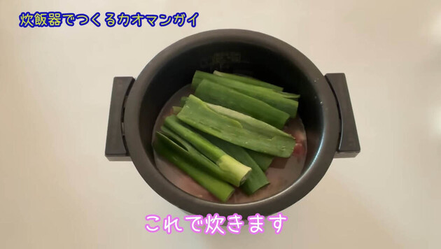 その上に青ネギをのせ、炊き込みモードもしくは普通の炊飯で炊きます。