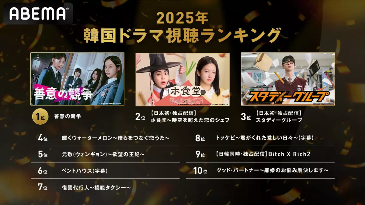 ABEMAが2025年の韓国ドラマ視聴ランキングTOP10を発表!