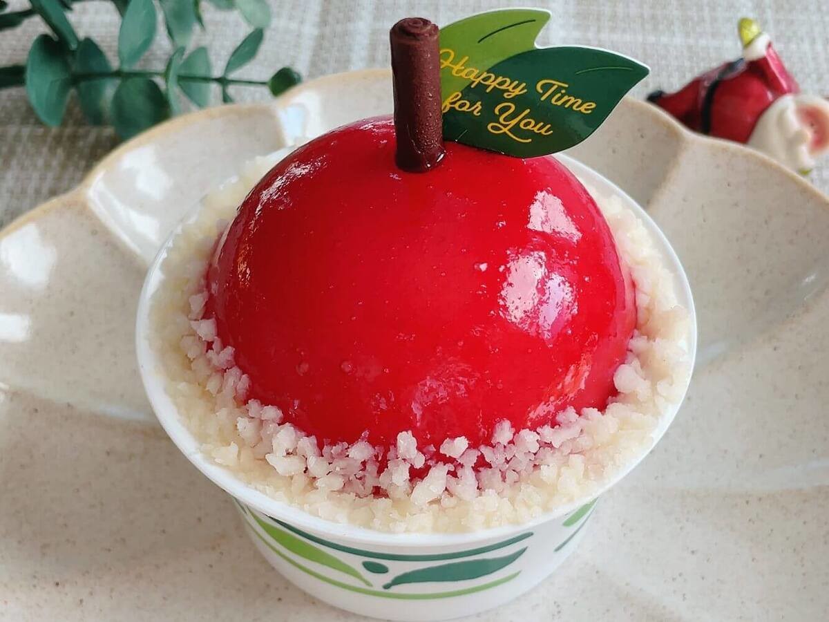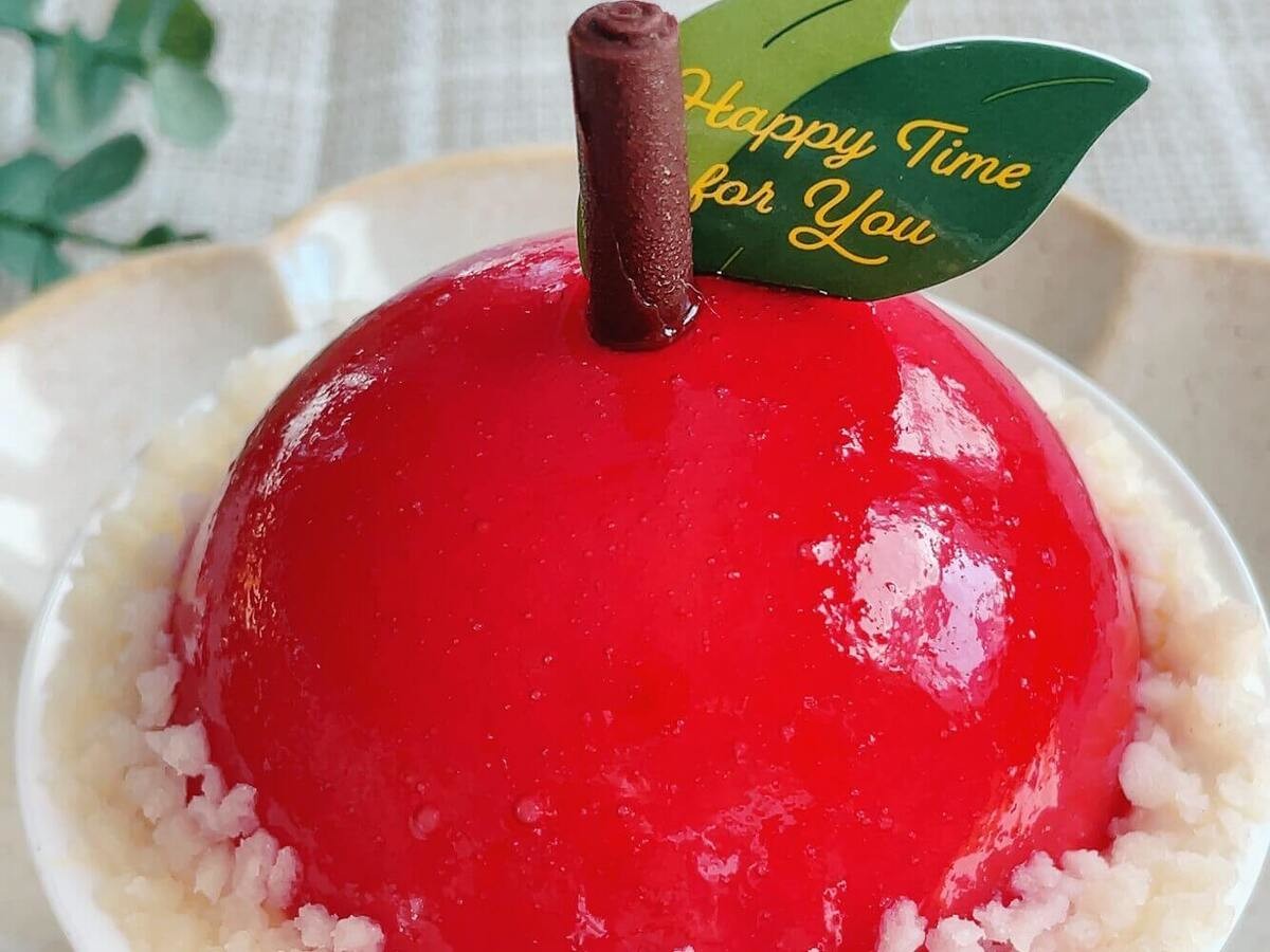まず最初に紹介するのが、つるんと丸く、つやつやした見た目が印象な「まんまるりんごケーキ」。