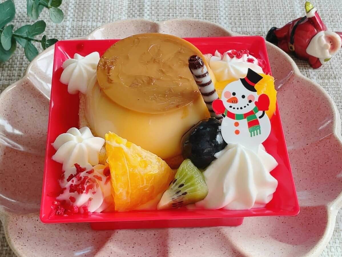 - 商品名:うみたて卵プリンのアラモード ハッピー雪だるま
