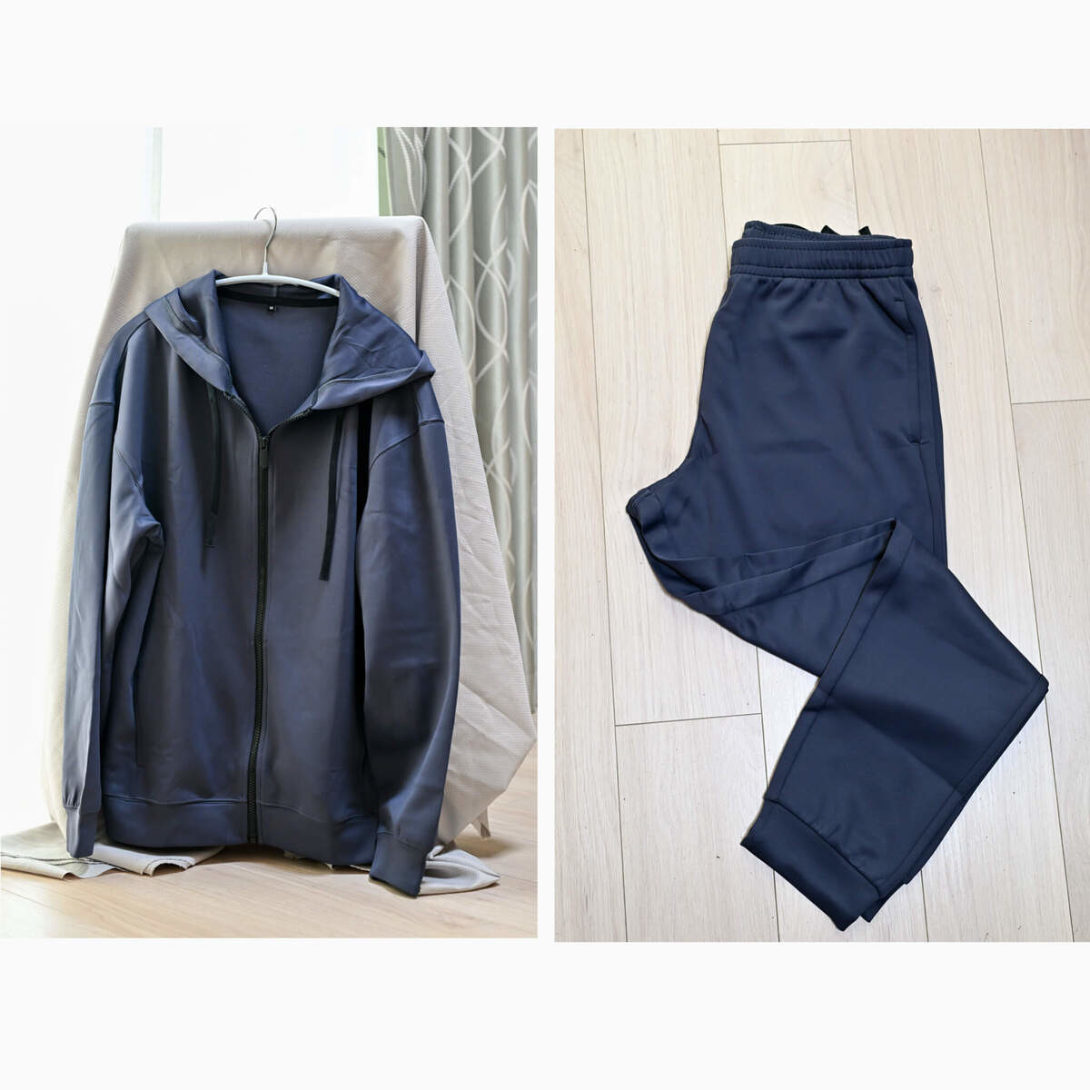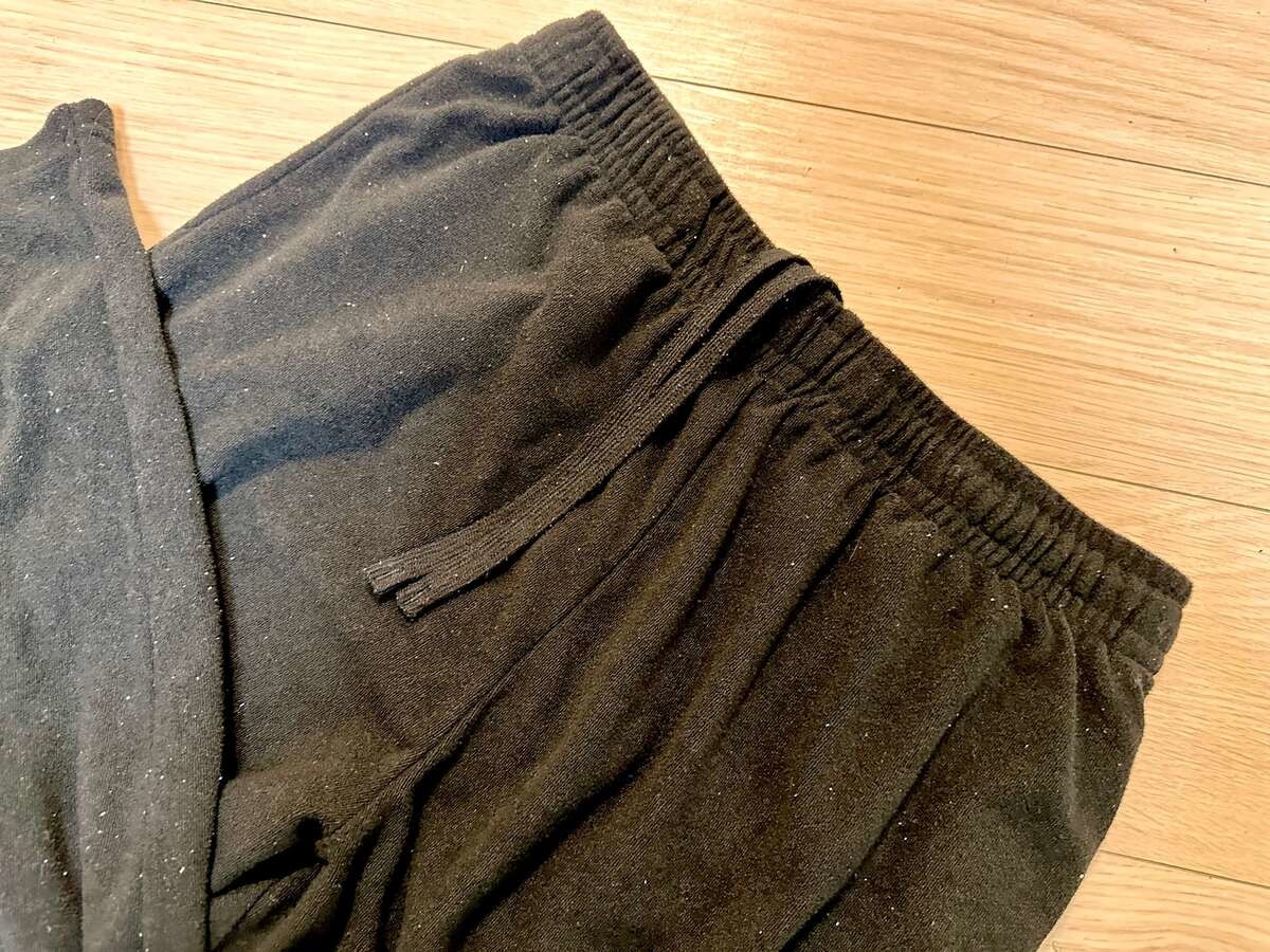 先ほどのクルーネックと同素材のボトムスです。 もちろん機能面は同じで、夫は上下セットで着ています。