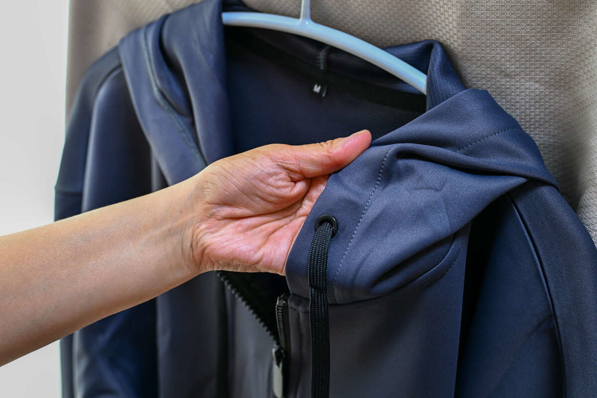 ジャージタイプのリカバリーウェアで、ハリ感のあるダンボールスウェット素材。ストレッチもよく効いています。
