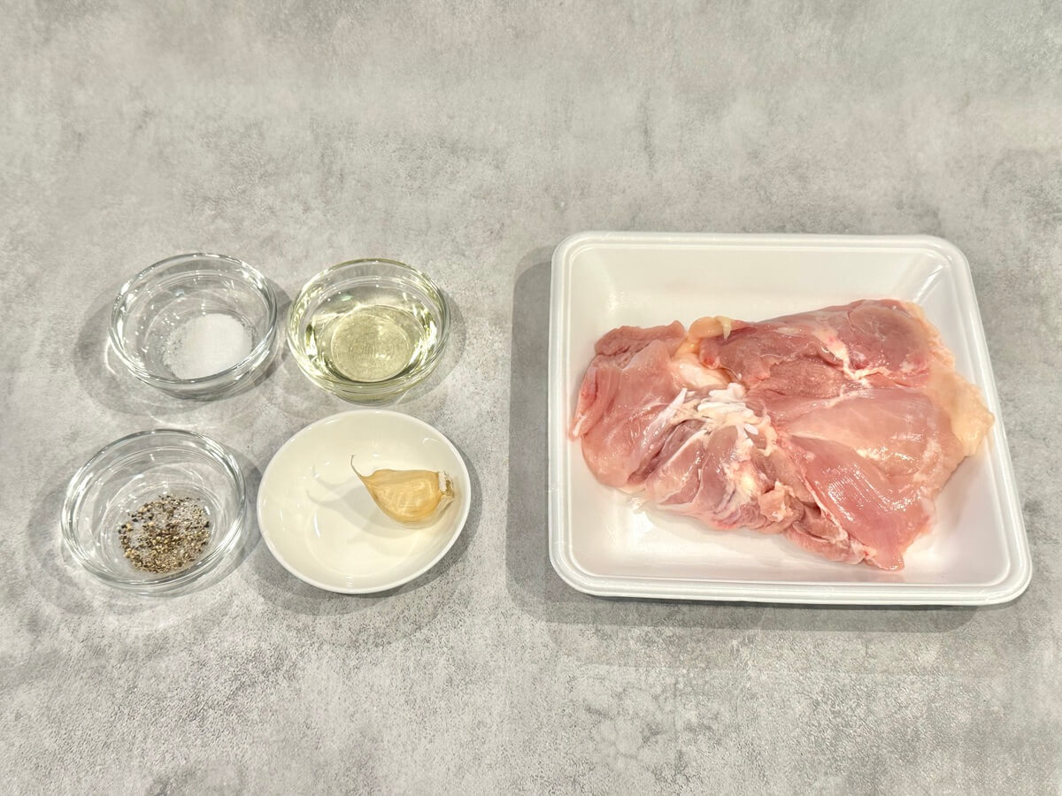 材料は、鶏もも肉、にんにく、塩こしょうと極めてシンプル!
