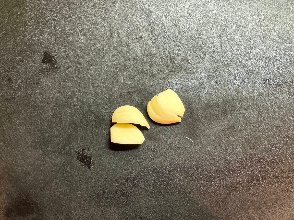 鶏肉を冷蔵庫で乾燥させている間に、にんにくの下処理をしておきます。