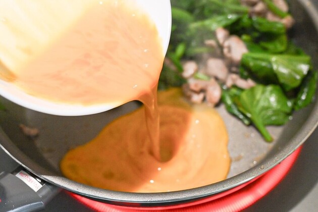 ほうれん草を加えたら全体をさっと炒め合わせます。