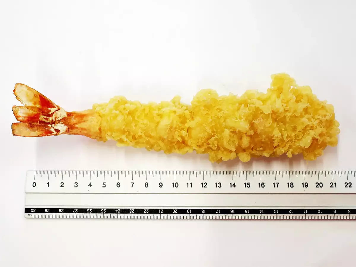 ブラックタイガーのサイズは実は国際基準で決められています。今回のジャンボえび天にはその中でも、一般的な流通サイズの上位にあたるとても大きなサイズのものを使用しています。