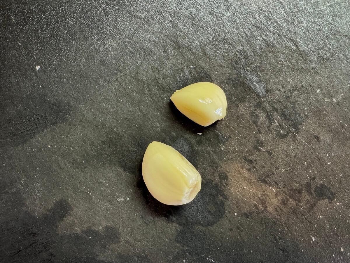 筆者は少し早く取り出しすぎたせいか、にんにくがまだかたくて潰すのが一苦労でした。今回は少し火にかけてやわらかくしながら潰しましたよ。