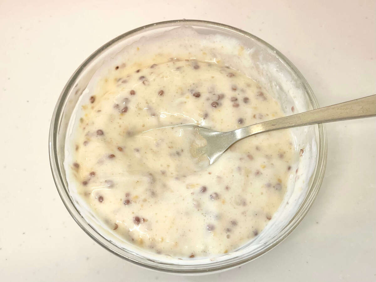 マヨネーズ、マスタード、砂糖を混ぜてマヨソースを作ります。
