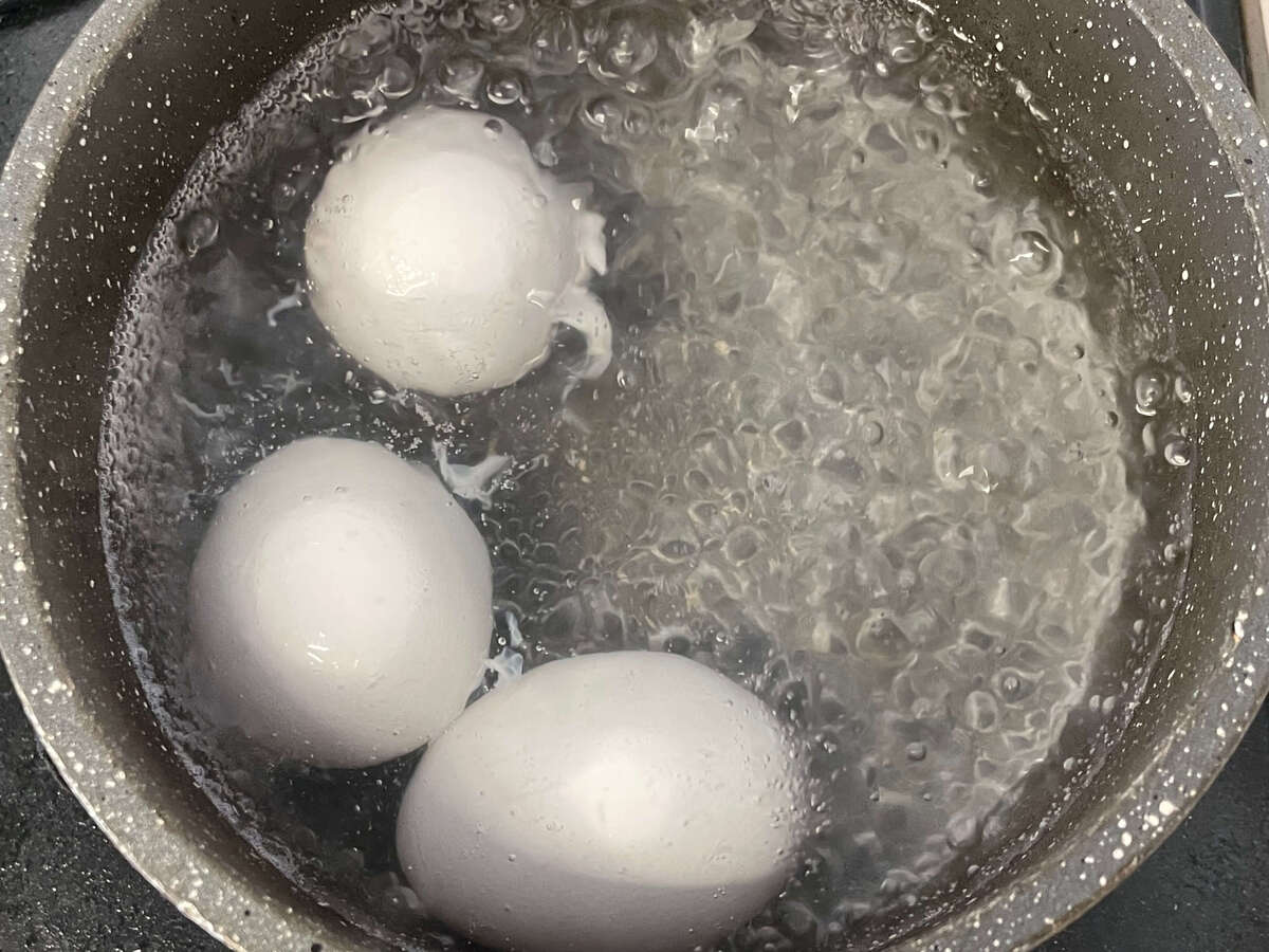 鍋に湯を沸かし、卵を静かに入れ、7分ゆでます。