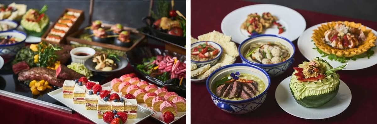 また、日本にありながら本場タイの料理を提供するレストランに対し、タイ国商務省国際貿易振興局が認定する制度「タイ・セレクト」において2つ星に認定されたタイ料理レストラン「スアンブア」による本格グリーンカレーやガパオライスがセイヴォリーとして並びます。