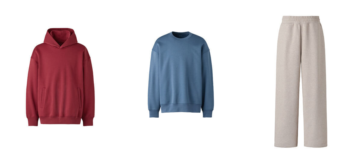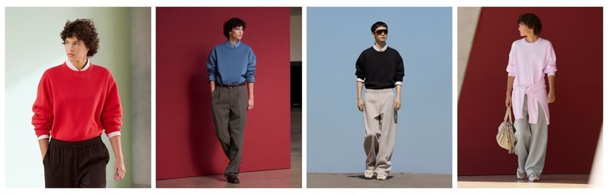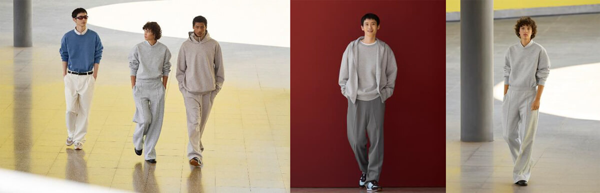 「UNIQLO : C」では好評のスウェットワイドパンツの生地を使用したスウェットストレートパンツのほか、メンズからワイドなシルエットが特徴のバレルパンツ、テーパードパンツが登場するなど、デイリーで使えるアイテムが揃います。