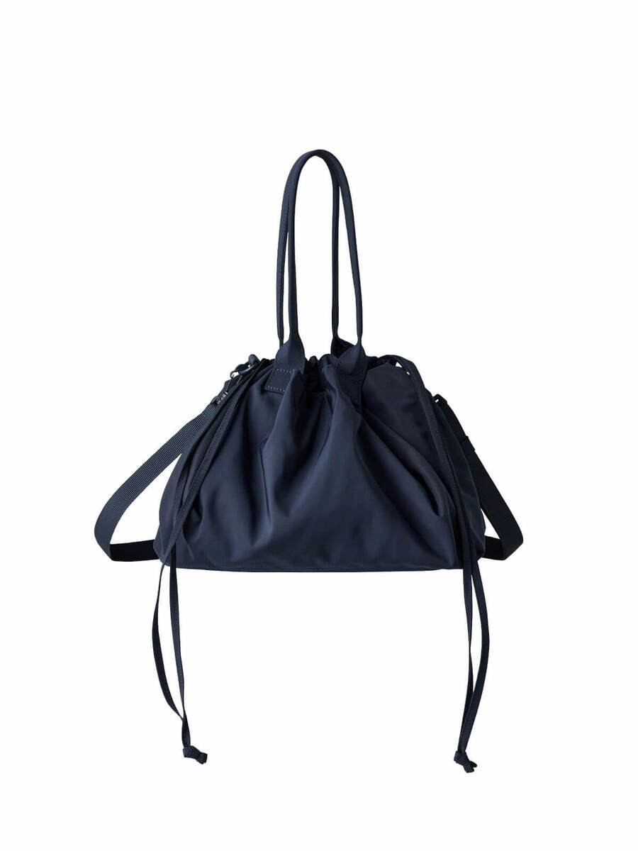 ・トートバッグとしても使える2WAYデザイン。絞って丸みのある形にもアレンジ可能。