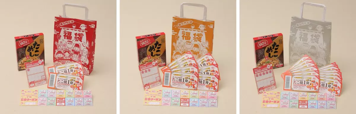 「たこ焼1舟引換券(8個入り)※2」や、銀だこ特製の「たこめしの素」、毎月使える「100円引き(税込価格より)クーポン券 ※3」に加え、福袋限定の“スタンプ”が捺印された「銀だこスタンプカード ※4」まで入った、大変お得な内容となっております!