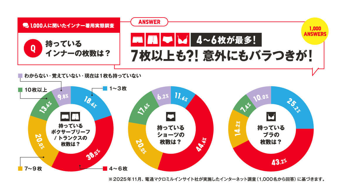 調査では、所有枚数・最長着用期間・買い替え頻度という3つの指標から、知られざるインナー事情を徹底分析。