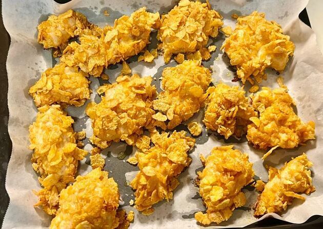 普段は朝食で食べているコーンフレークが、まさかのナゲットの衣に大変身するとは驚きのレシピでした♡