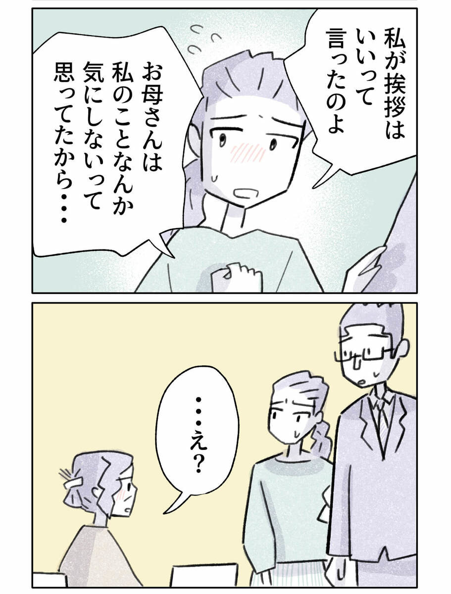 「ご挨拶が遅れて」という彼をかばうように、凛さんの「お母さんは私のことなんか気にしない」発言が。これには、凛さんのお母さんも驚いていますが、お互いの気持にズレがあるみたいですね……。