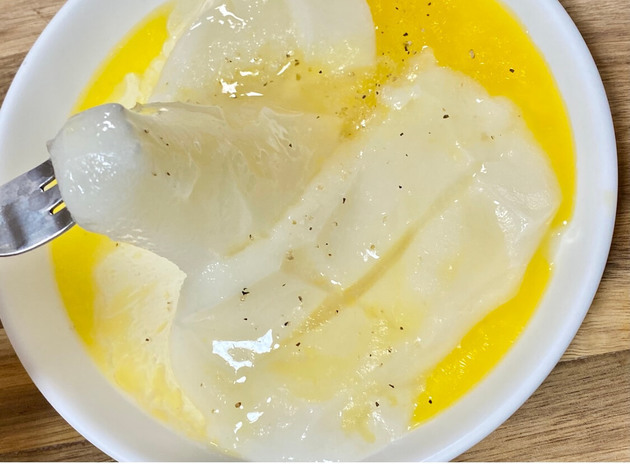 ペッパーバターハニー餅の作り方③塩こしょうとはちみつをかけて完成