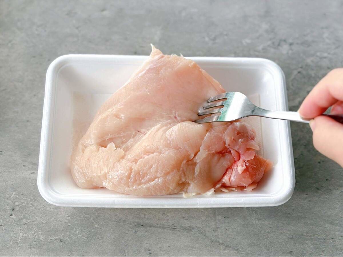 鶏むね肉は5〜7mm厚さのそぎ切りにします。