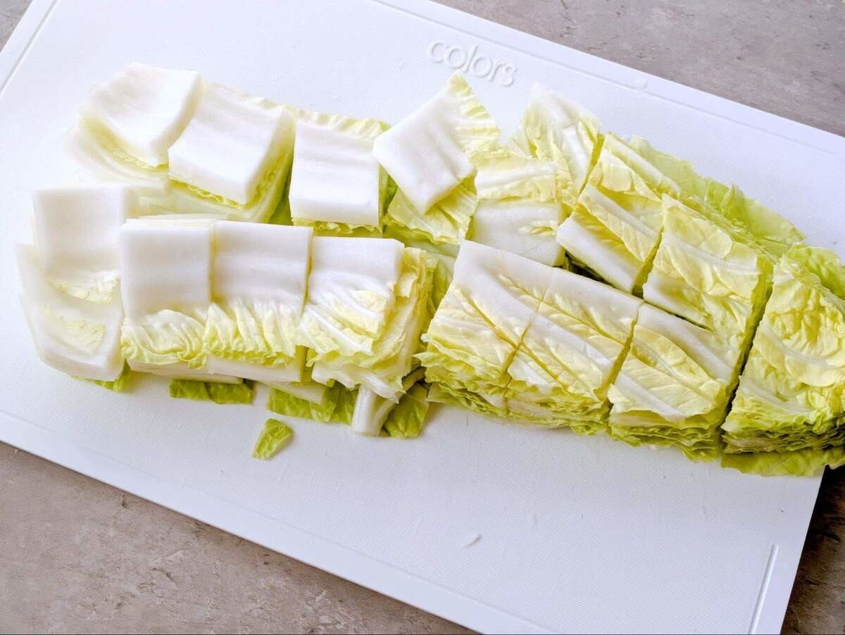 白菜は食べやすい大きさに切り、生姜は千切りにしておきましょう。