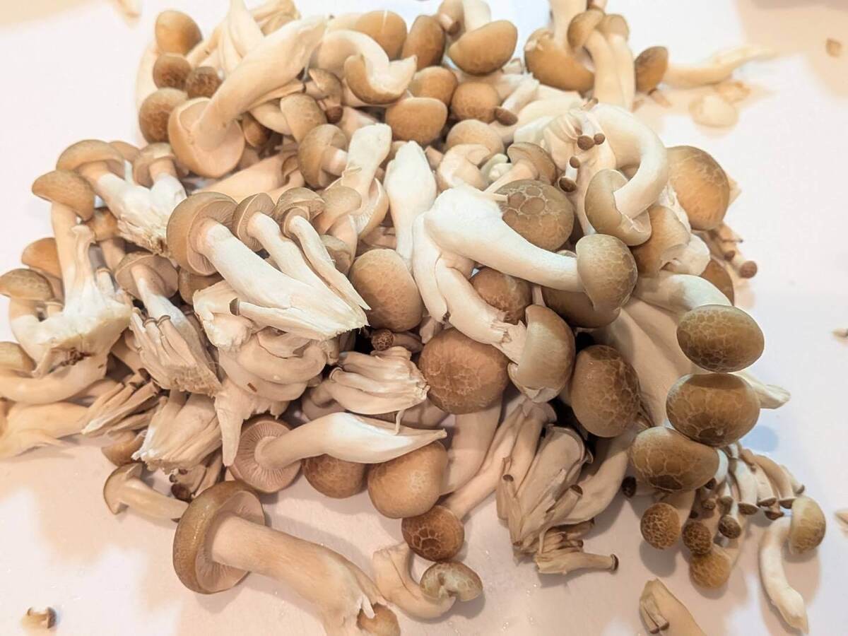 しめじは石づきをとり、バラバラにほぐします。