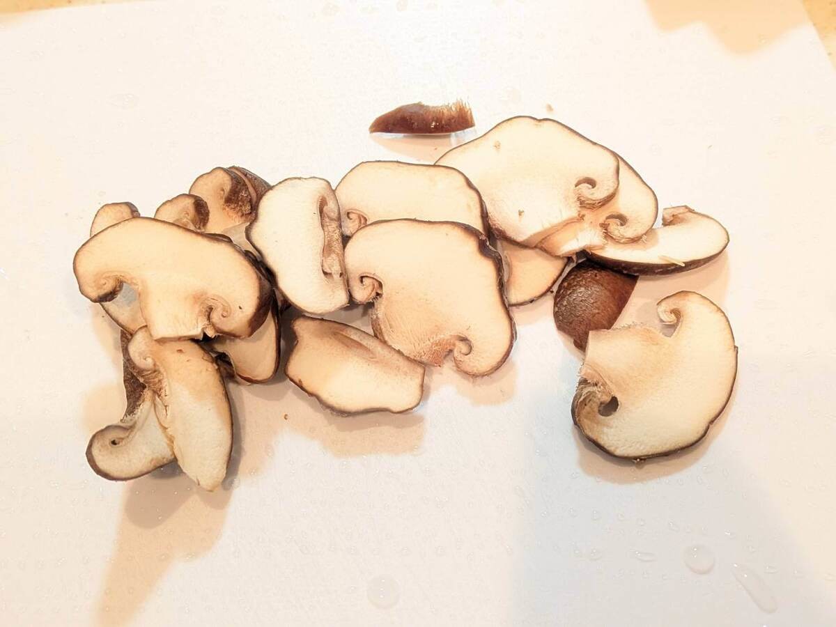 しいたけは均等な幅に薄く切ります。