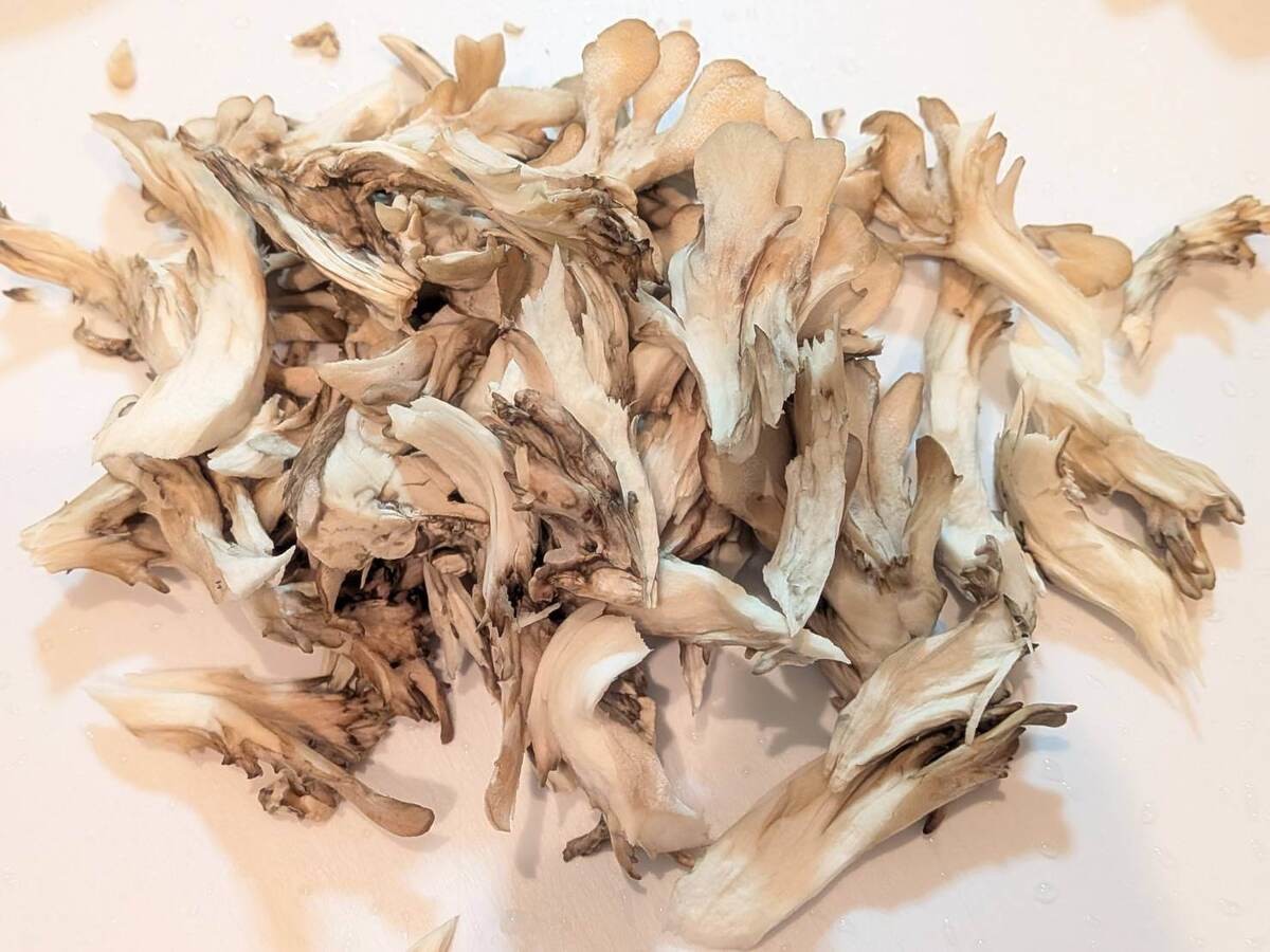 まいたけも、食べやすい大きさにほぐします。