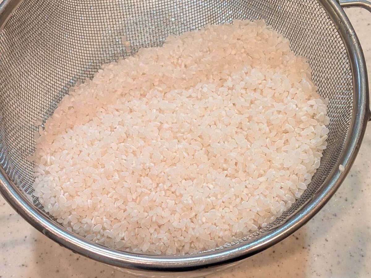 水分がしっかり米から切れていた方が味がしみ込みやすいので、炊き込みごはんのときは少し早めに洗ってザルにあげておくのがポイントです♪