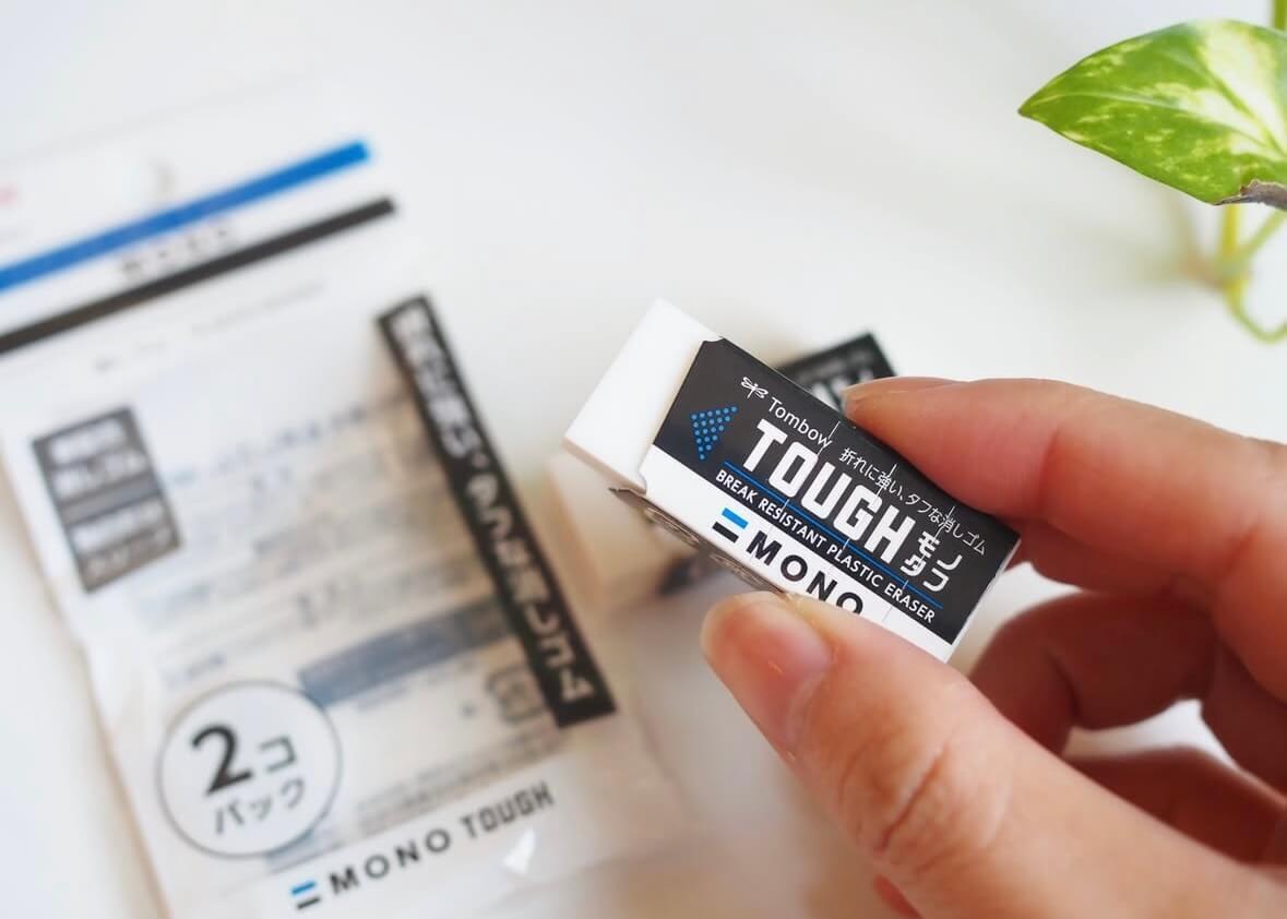 続いてご紹介するのは、ダイソーで販売されている「モノタフ消しゴム」です。