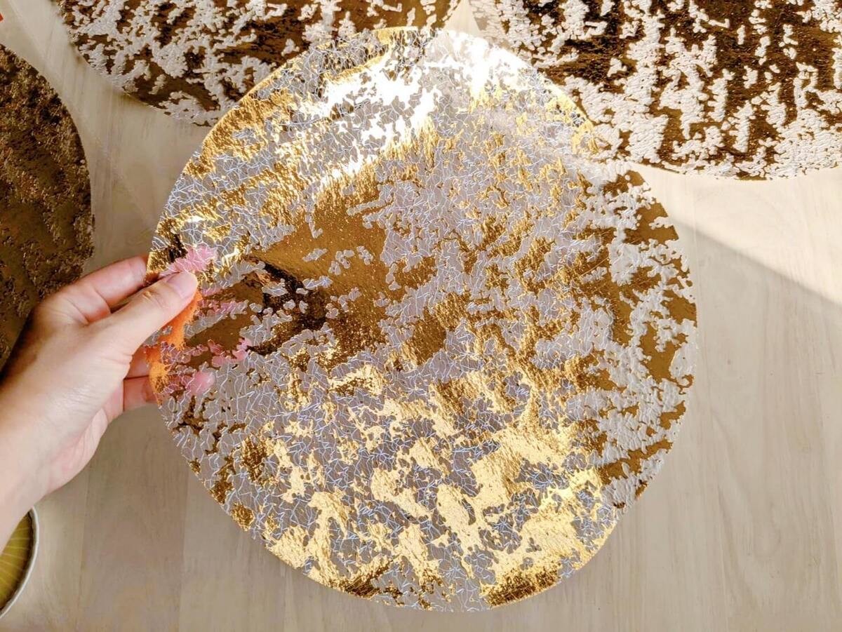 まるで、金粉で作ったテーブルクロス。置くだけでテーブルが美しく、そしてめでたい感じに仕上がります。