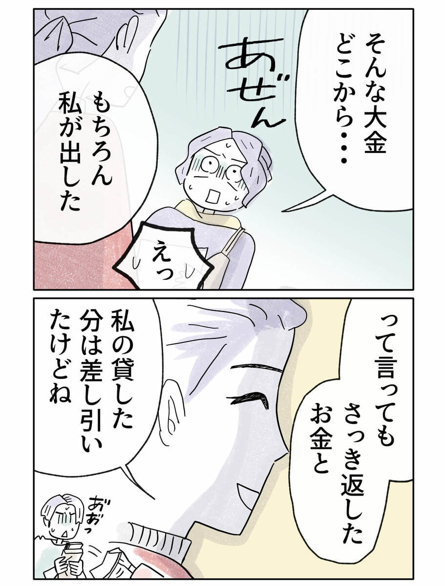 ところがところが!それを聞いたお母さん、まさかの「あんなにお金持ってるって自慢してたくせに、凛に出させるなんてケチな人なのねぇ」って……おいおい!! 凛さんがどんな思いでそのお金を用意したかも考えず、自分の息子を棚に上げて、凛さんの婚約者を“ケチ”とののしるお母さん。