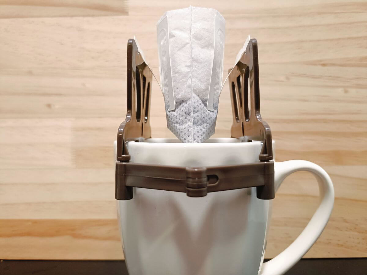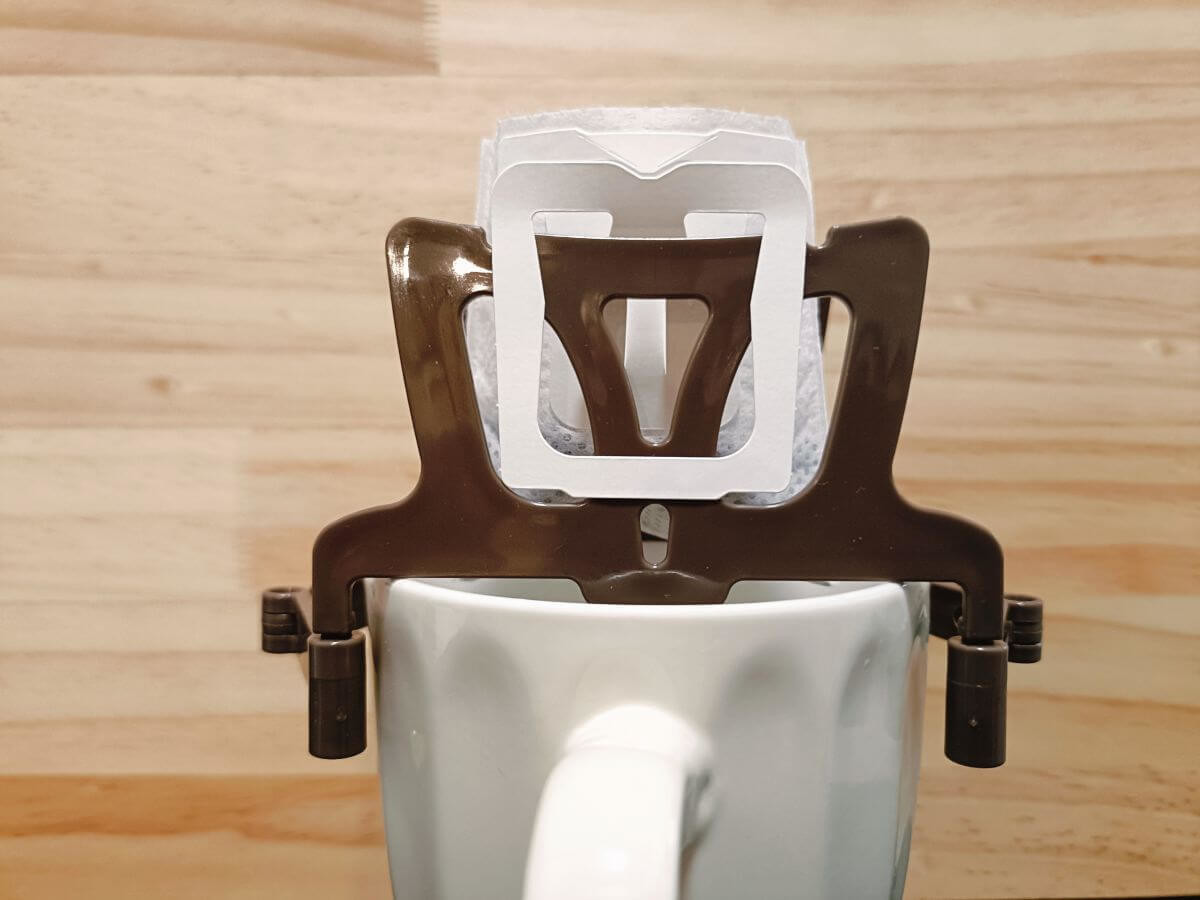 そしてそのスタンドの上から口を開いたドリップバッグをかけるだけです。