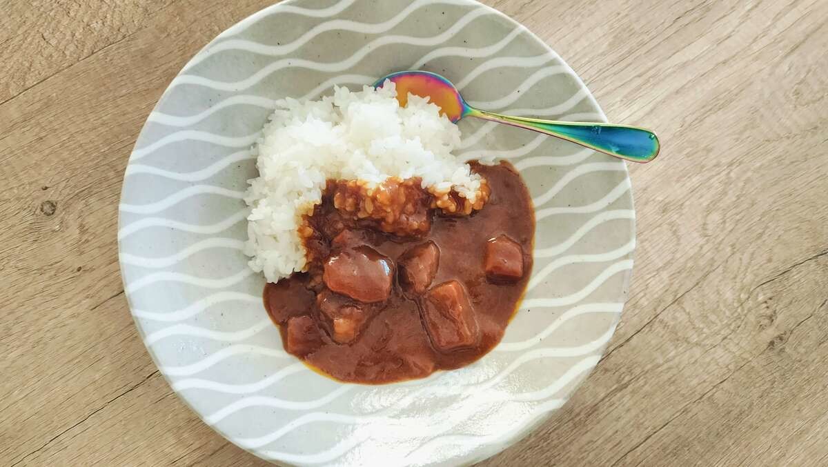 味は中辛程度で、思った以上にお肉も野菜もごろごろしています。じゃがいも、にんじん、そして牛肉が入っていて、食べ応え抜群なんです。