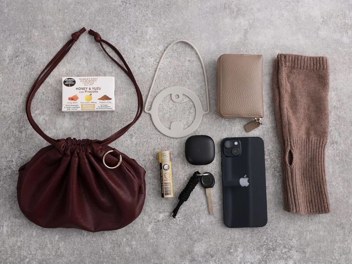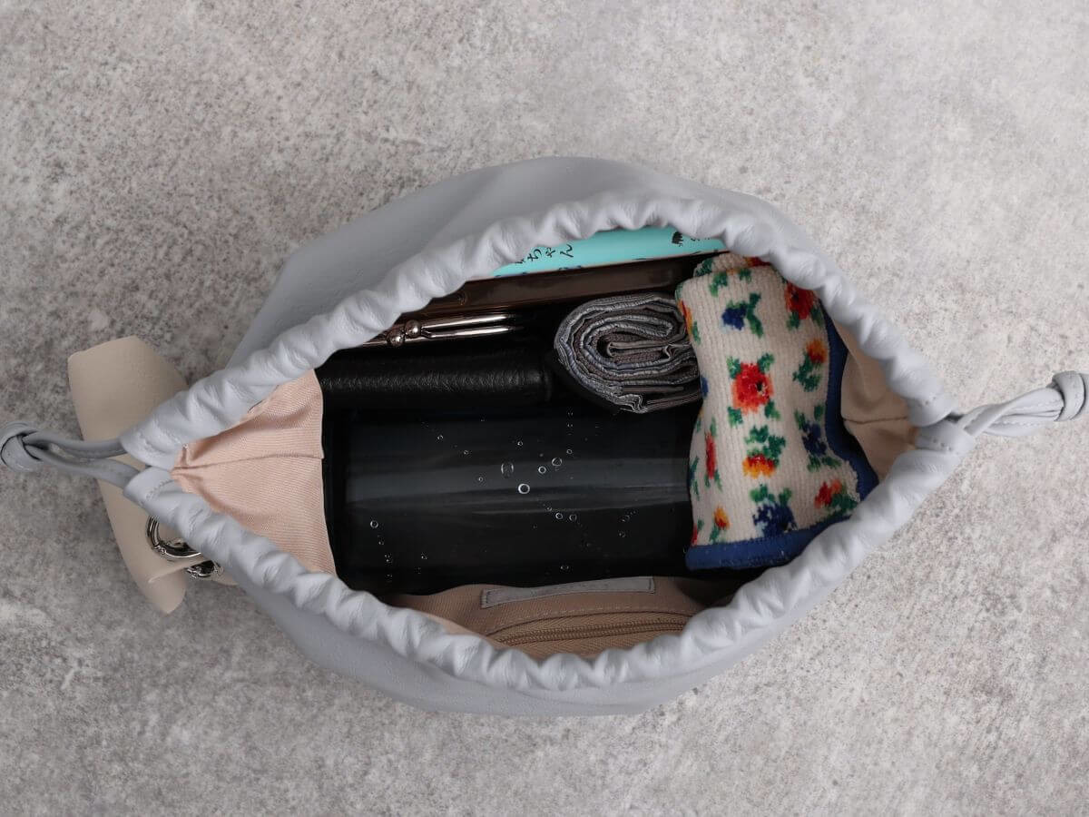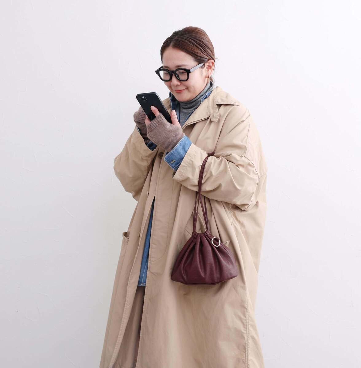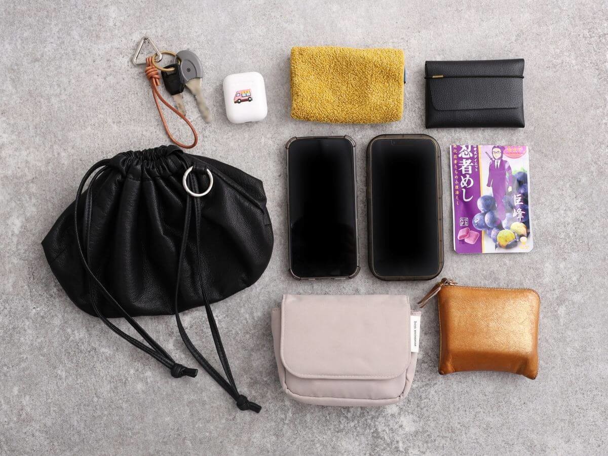 そこでフェイクレザーの巾着ポーチを“バッグインバッグ”として使ってみました。