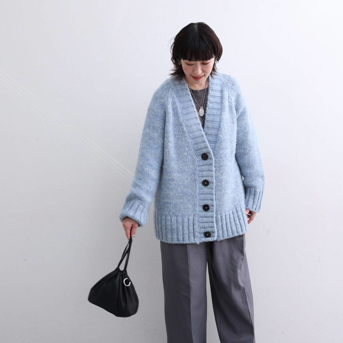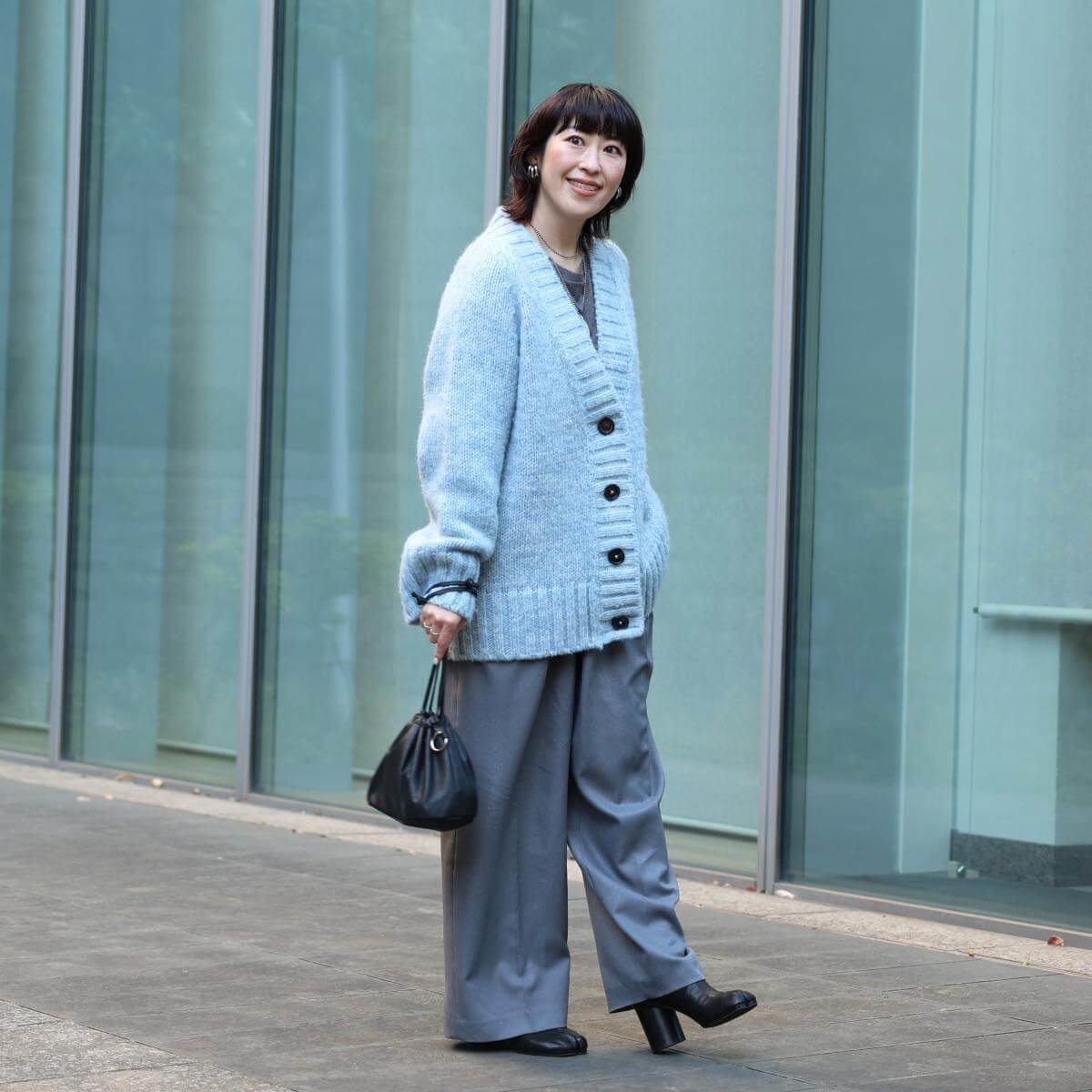 普段はブラックを選ぶことが多いのですが、ネイビーのコートなどにも合わせやすいようにサックスブルーをチョイス。