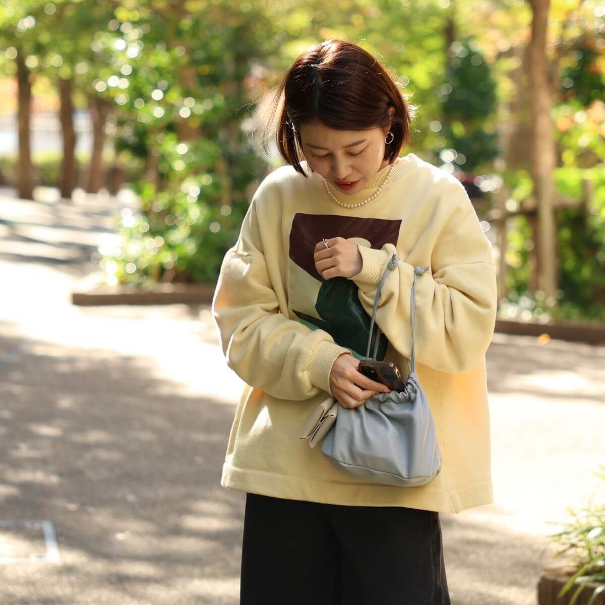 丸くて柔らかなフォルムで、大活躍の「巾着ミニバッグ」!
