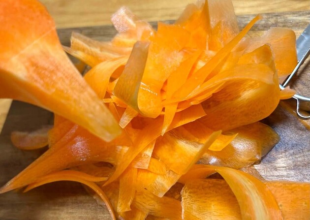 作り方①人参をピーラーで薄くスライスする