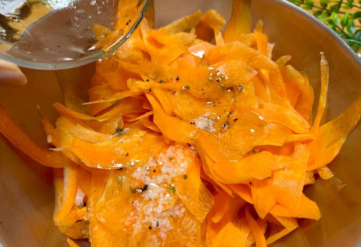 1本の人参をすべてスライスするのは、正直言ってちょっと大変……。ですが、今回のレシピの頑張りどころはココだけです。