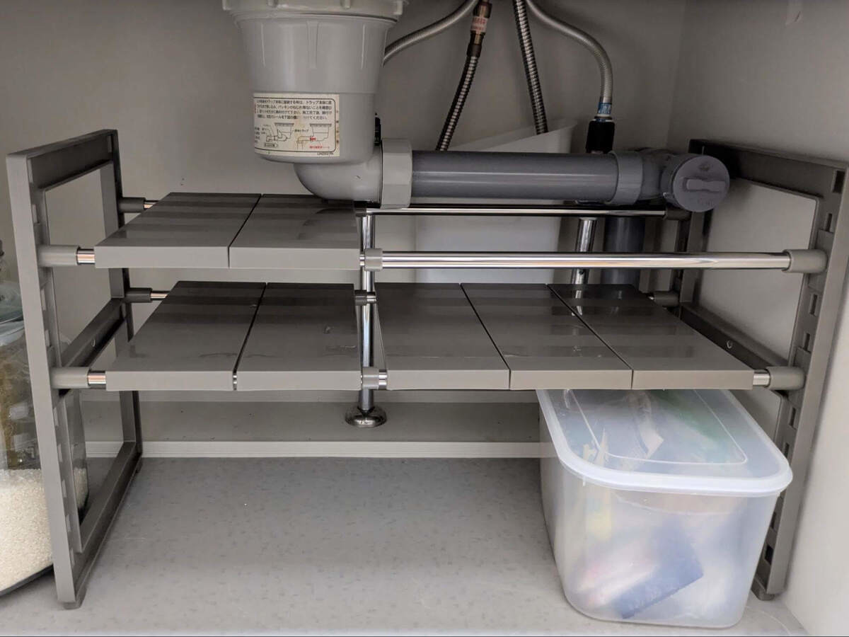 棚板の位置を自由にずらして設置できるシンク下の収納棚です。