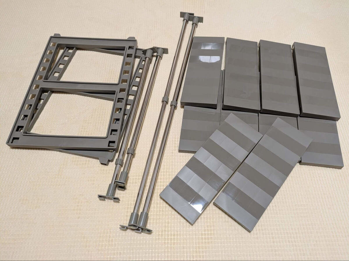 おうちで組み立てる必要がありますが、説明書がなくても直感的にパーツを組み合わせられ、すぐに完成しました。このときに、棚板の高さも自由に変えられることを発見!