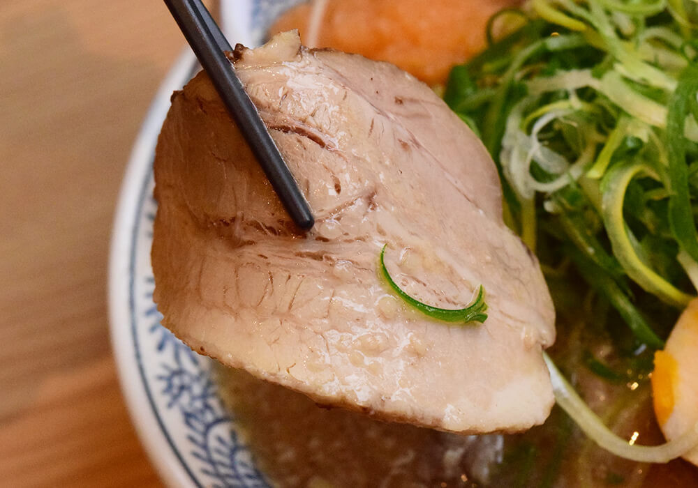 「特製肉そば」には、豚肉の他にチャーシューも入っています。しっかりとした食感で、甘みはないタイプです。