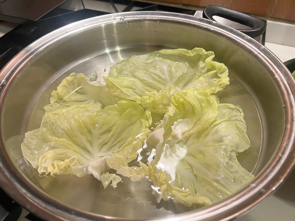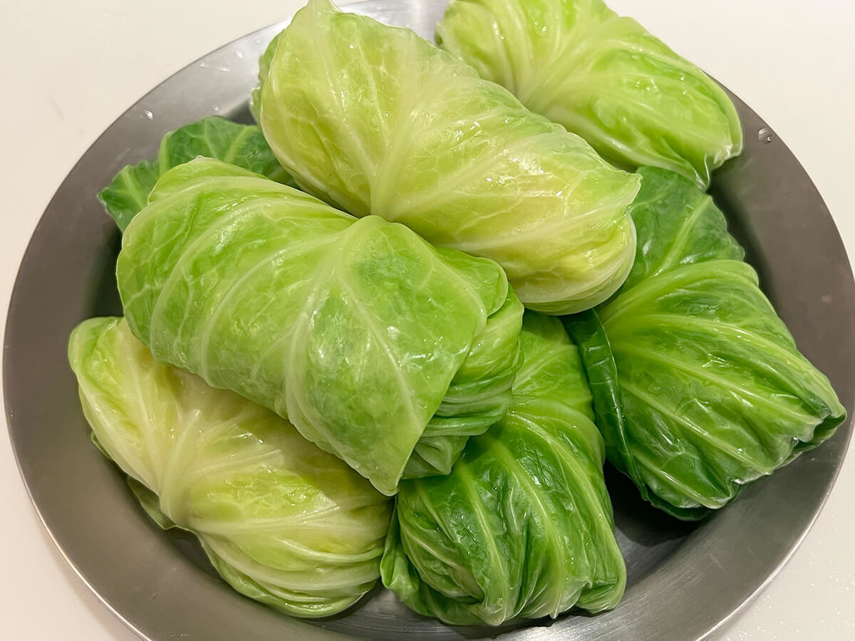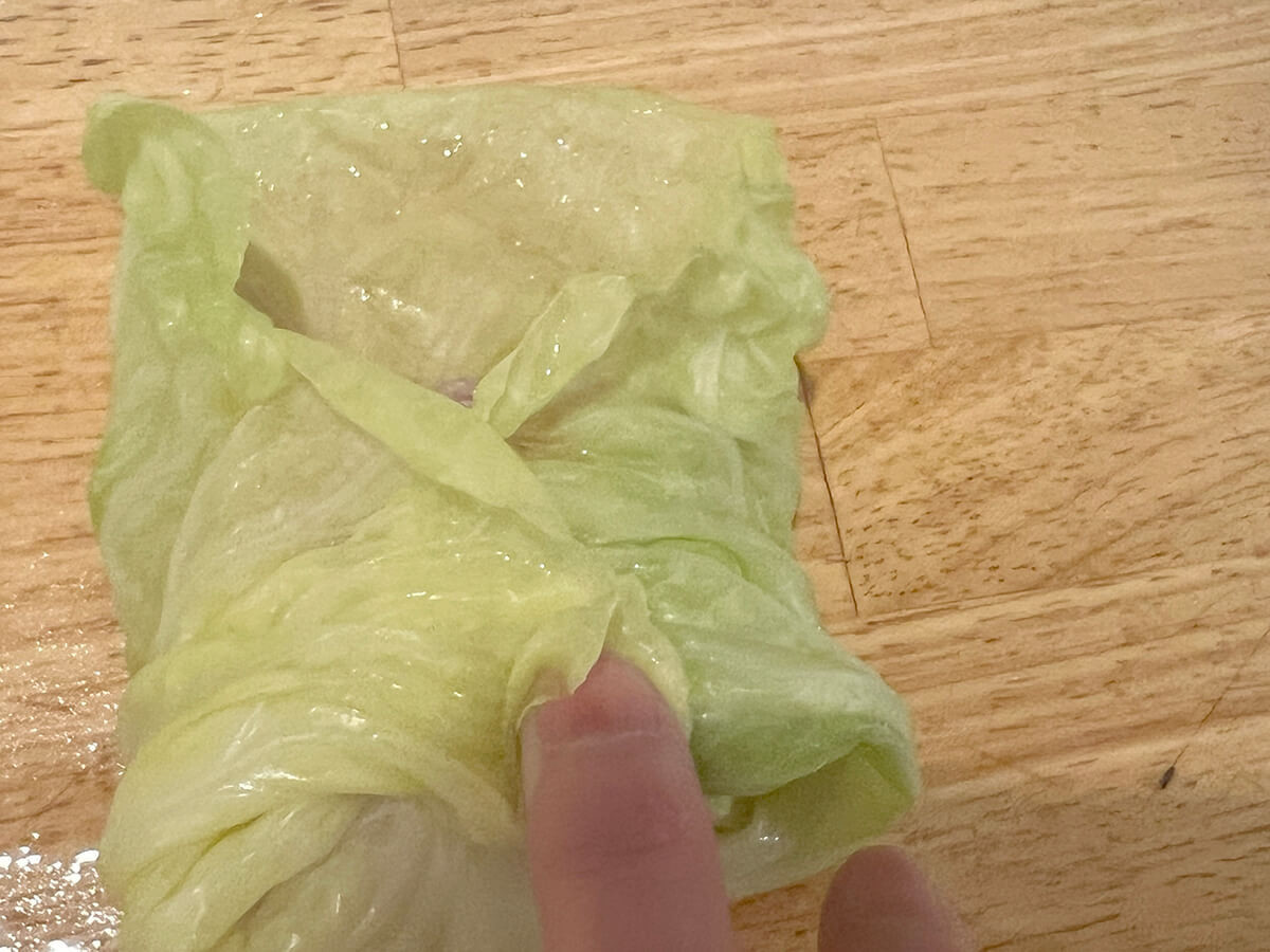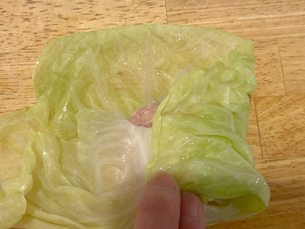 実はあまりに夢中になっていて、キャベツの葉の水分を取る工程をすっ飛ばしてしまいました……。明らかに水っぽいのはご容赦ください。