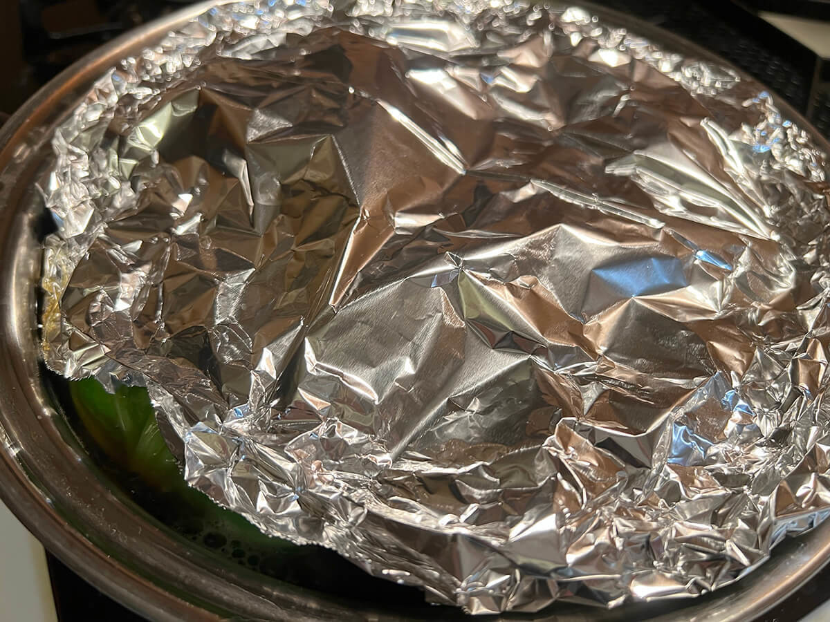 ※アルミ箔が鍋からはみ出さないように気をつけてください。