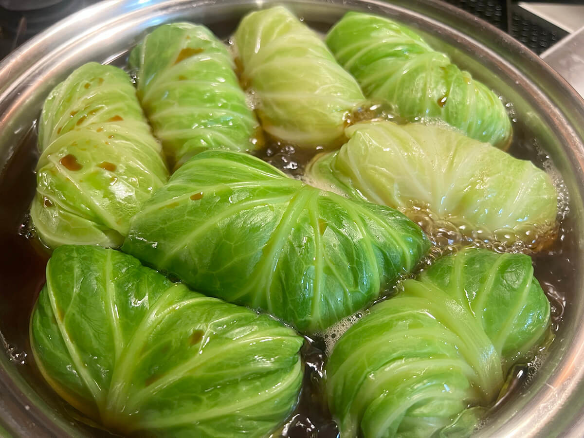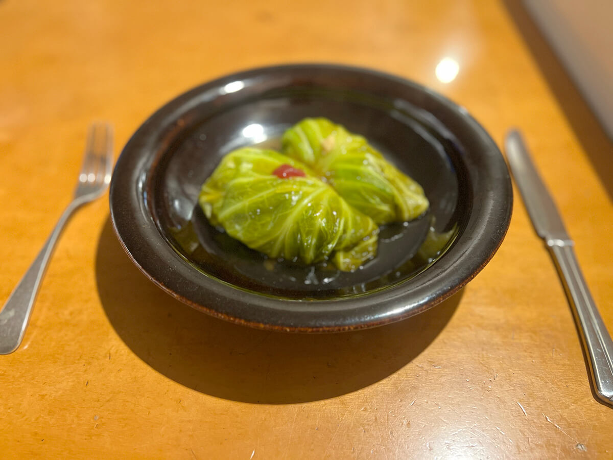 こっくりした和風だしの味がたまりません。じゅわっふわっとした肉だねがやわらかく甘いキャベツの葉に幾重にも包まれていて、一緒に口に入れると幸せな味が口の中いっぱいに広がります。きゃー。