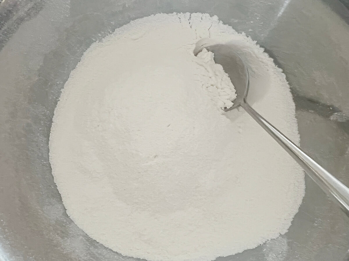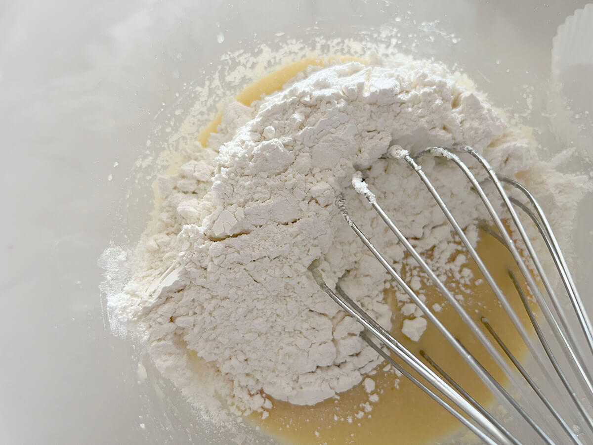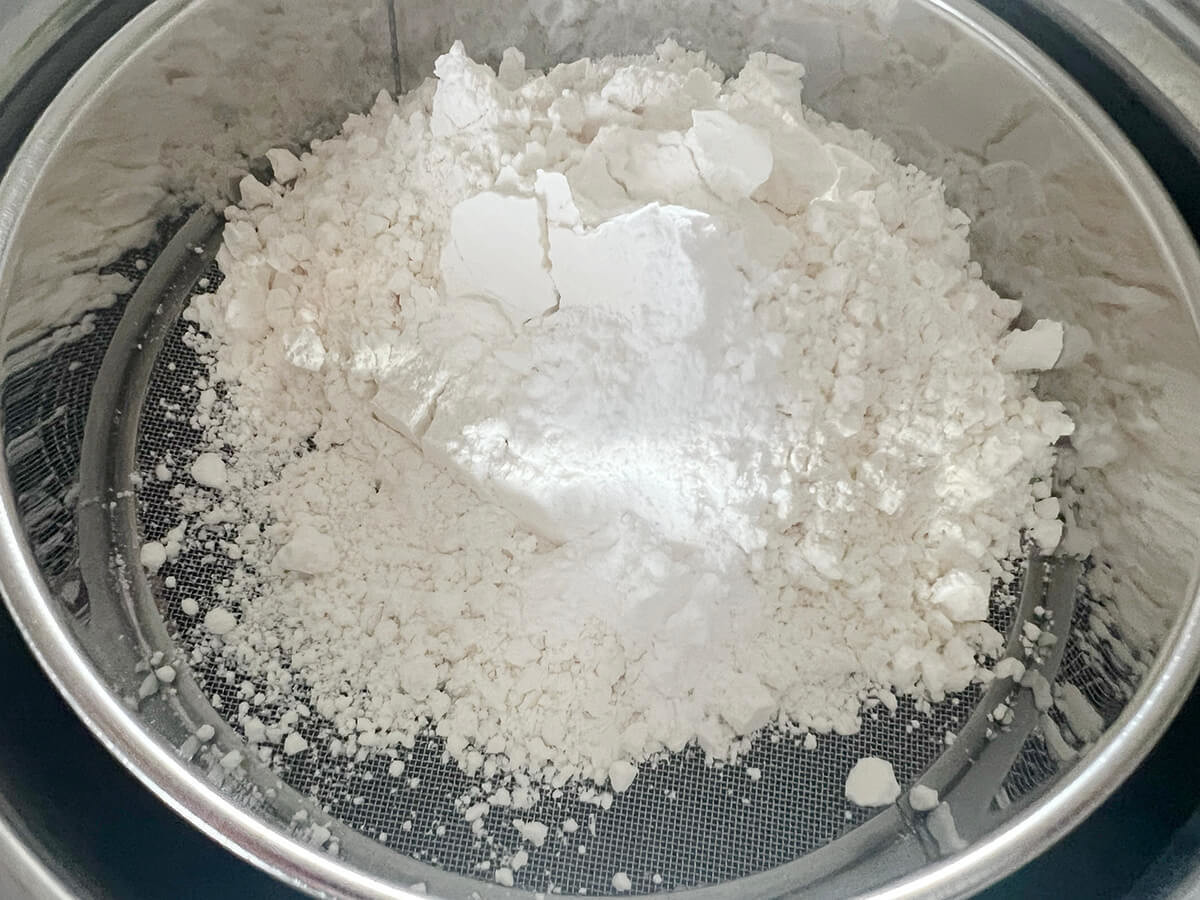 この配合はそこまでダマにならないので、気にしない人はふるわなくても良いそうですが、ふるうことでダマになりにくくなったり、粒子の間に空気が入ったりして、他の材料と馴染みやすくなるそうです。