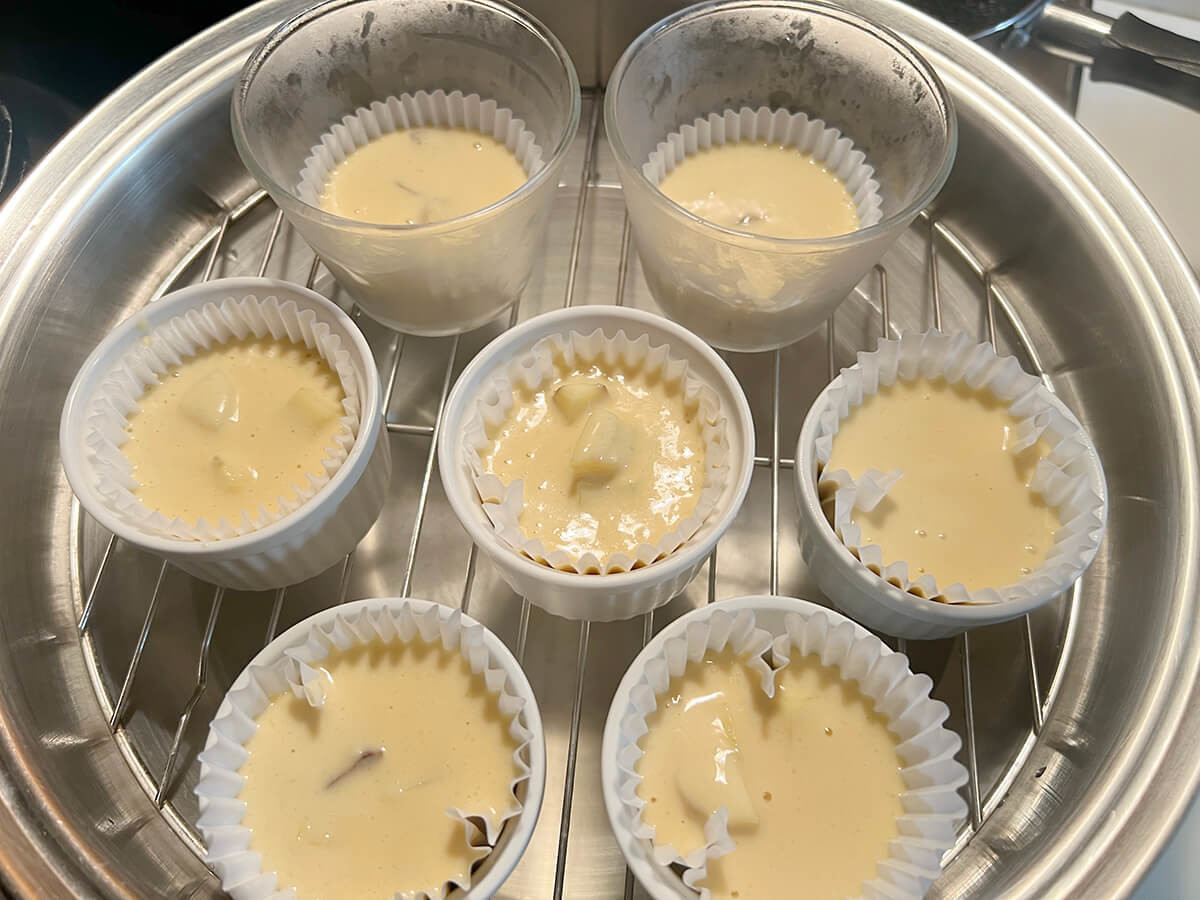 おお。いい感じです。これを型に入れて蒸すのですね。