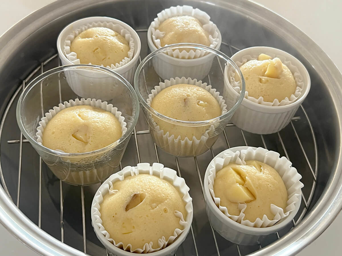 イーストで発酵させるわけではなく、ベーキングパウダーで膨らませるから簡単なのね、と今さらのように気付きましたが、蒸すことでこのもっちり感が出ているようです。