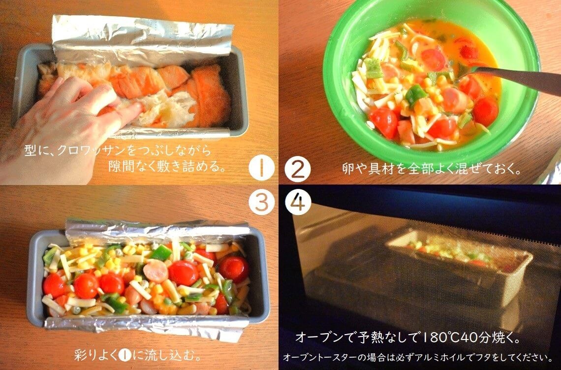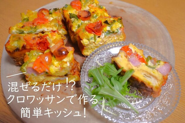 続いて、クロワッサンを使った「混ぜるだけキッシュ」を紹介します。