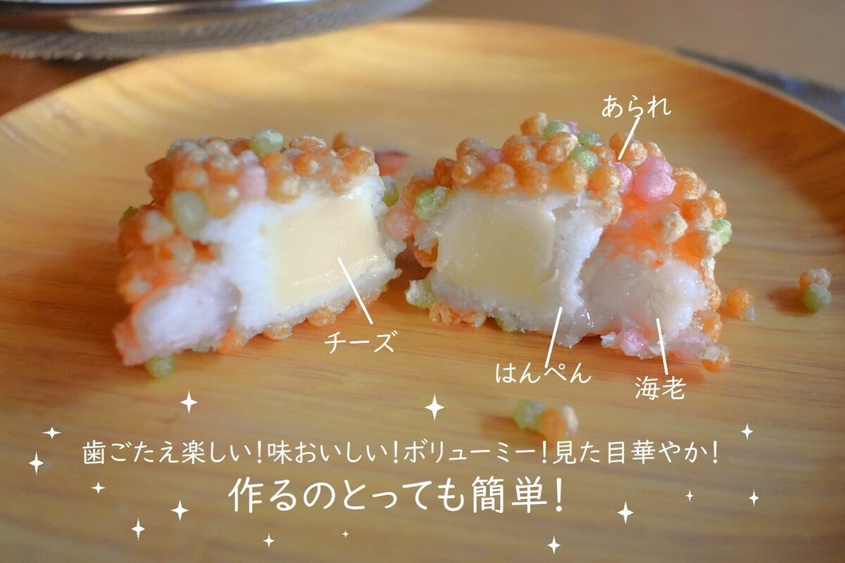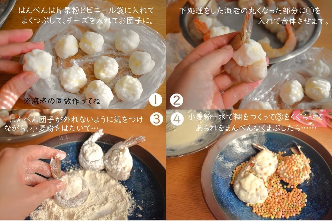 【作り方①】はんぺんをつぶしてチーズをくるんで海老と合体!?
