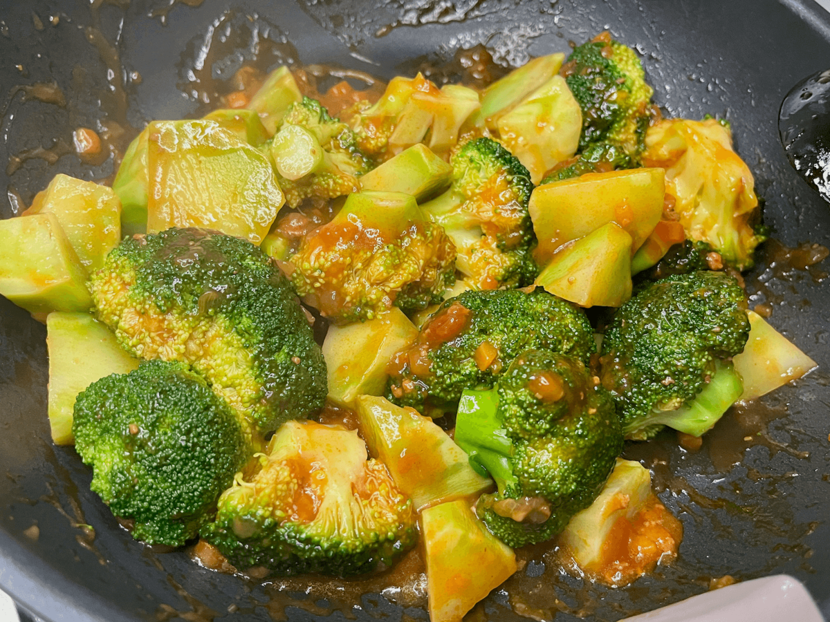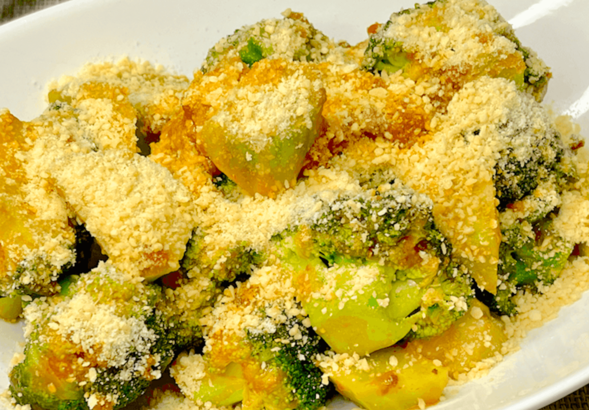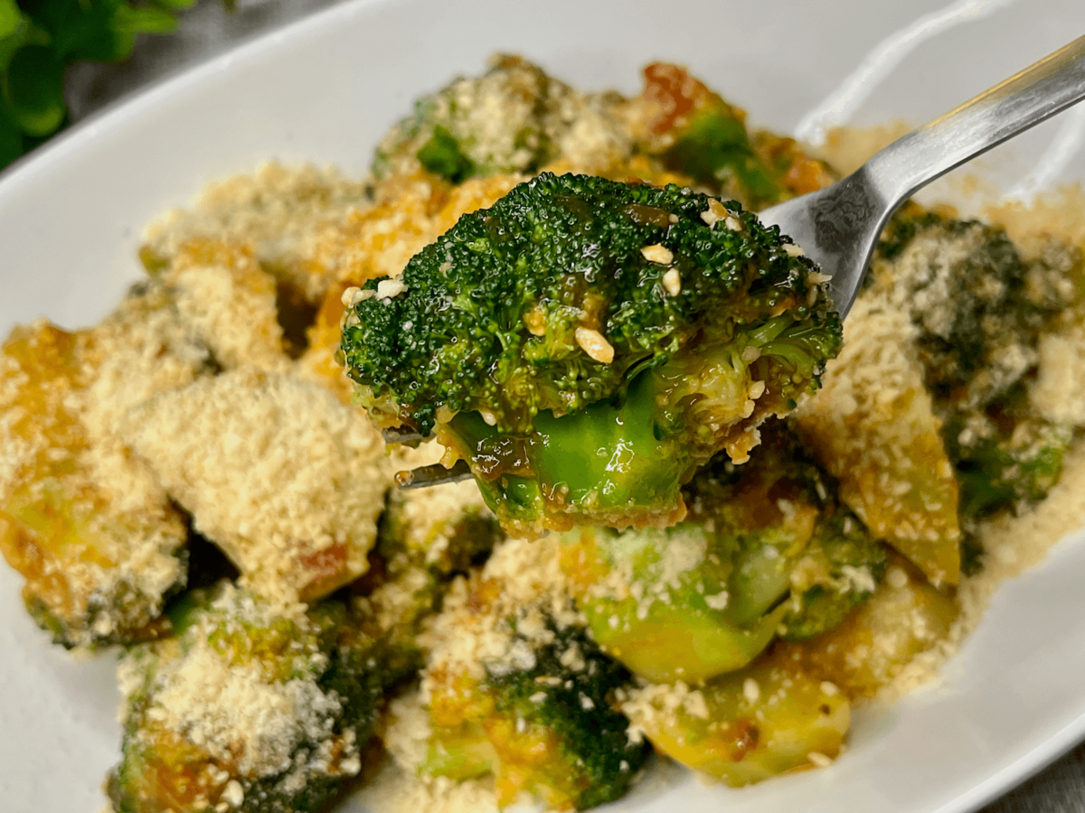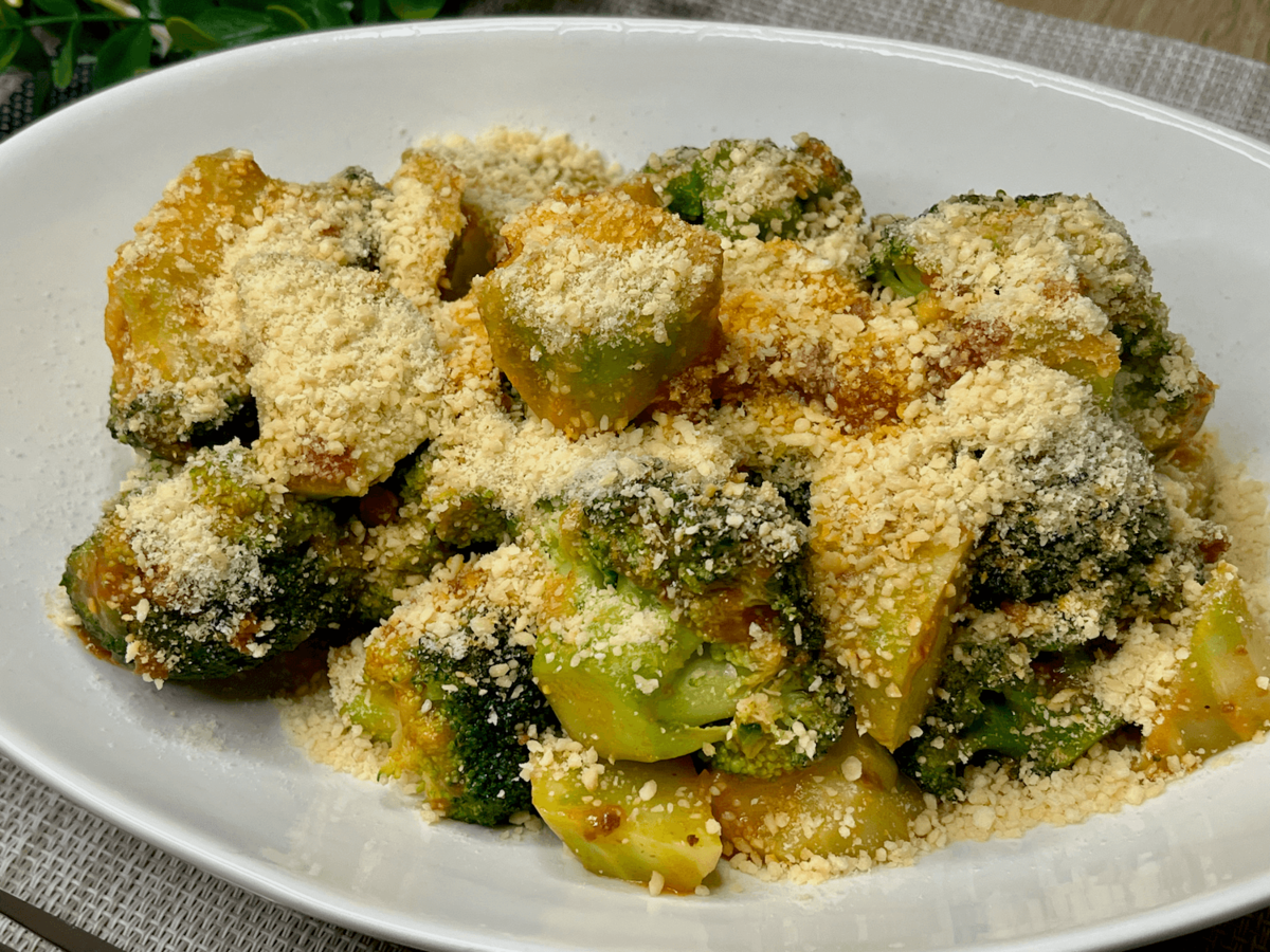 「ブロッコリーのソテーミートソース」は、ブロッコリーを茹でて焼き、ミートソースをかけるという超シンプルレシピ。